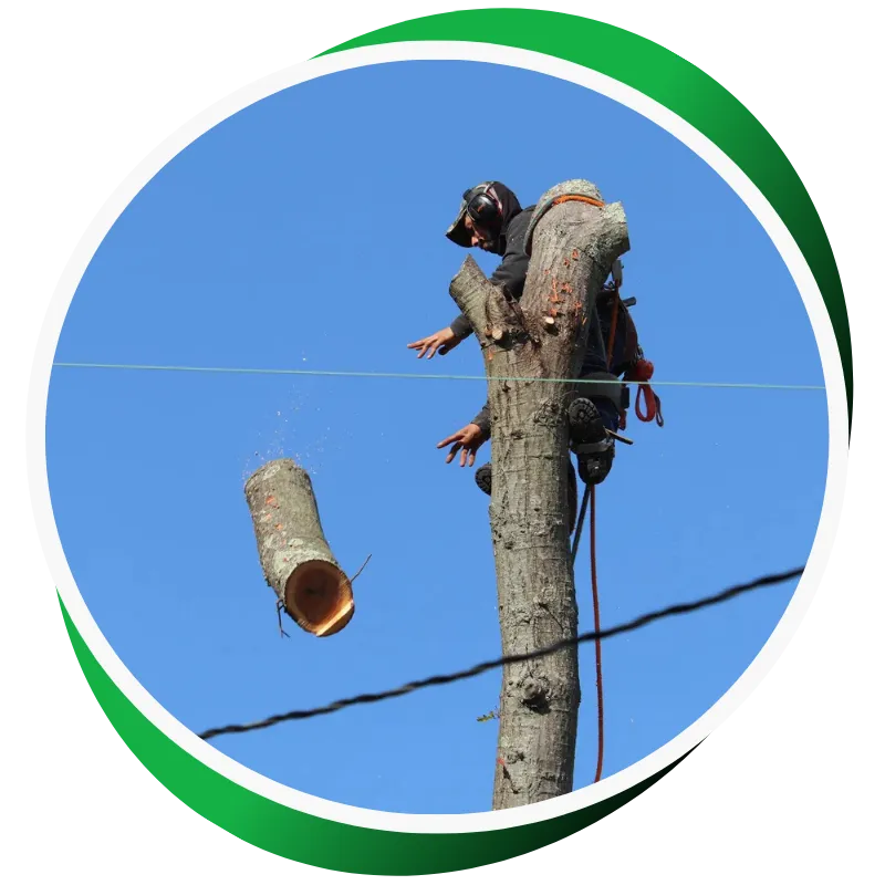 Yes. We assess risks around roofs, driveways, and walkways, then use controlled rigging and safe lowering to remove hazards, followed by full debris cleanup.